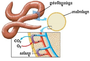 ជន្លេនដកដង្ហើមតាមស្បែក។ O2 ភាយចេញពីខ្យល់ដែលនៅក្នុងដីរួចឆ្លងតាមស្បែកសើមទៅក្នុងសរសៃប្តូរ។ ក្នុងសរសៃប្លូរអេម៉ូក្លូប៊ីនចាប់យក O2 រួចដឹកនាំទៅកាន់កោសិកានៃសារពាង្គកាយ។ ហើយឈាមដឹកនាំ CO2 ពីកោសិកាទៅកាន់ស្បែក និងចេញតាមសរសៃប្តូរទៅដីវិញ។