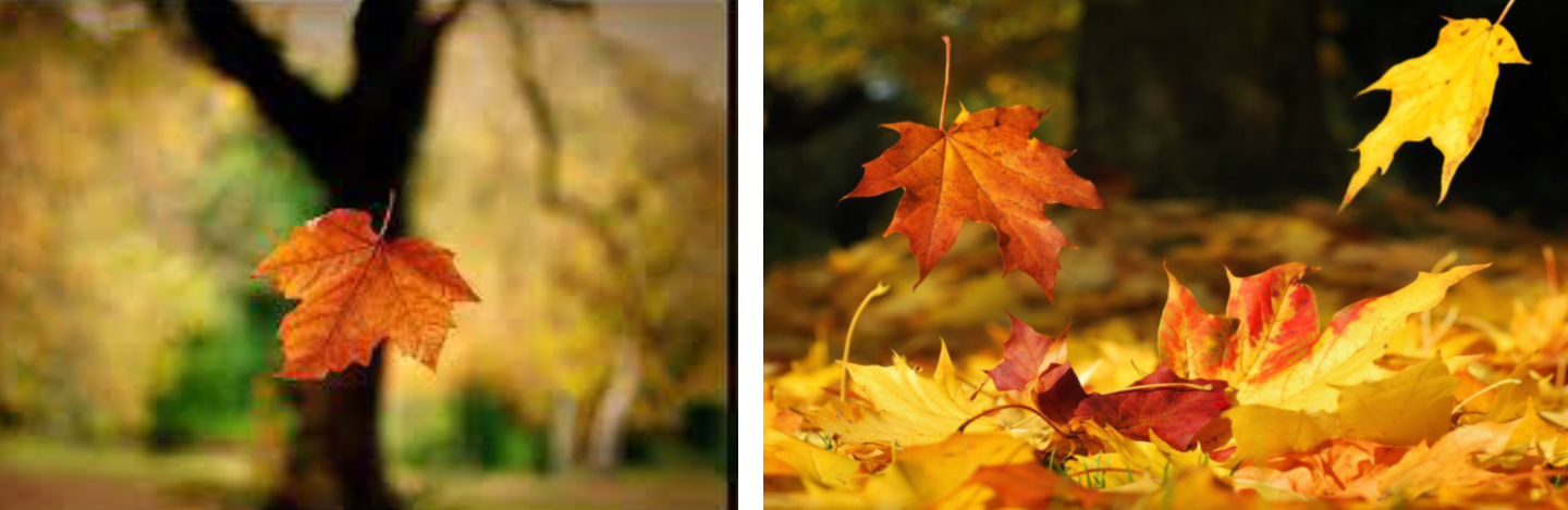 ក្លរ៉ូភីលរលាយបាត់ និងលេចឡើងនូវជាតិពណ៍អង់តូស្យាននៅត្រង់គល់នៃទងស្លឹកស្រទាប់ស្យែលបានកើតឡើង ហើយខ័ណ្ឌដាច់រវាងទងស្លឹក ហើយនឹងមែកបន្ទាប់មកស្លឹកជាប់នឹងមែកដោយសារបាច់សរសៃជ័រនាំប៉ុណ្ណោះ។