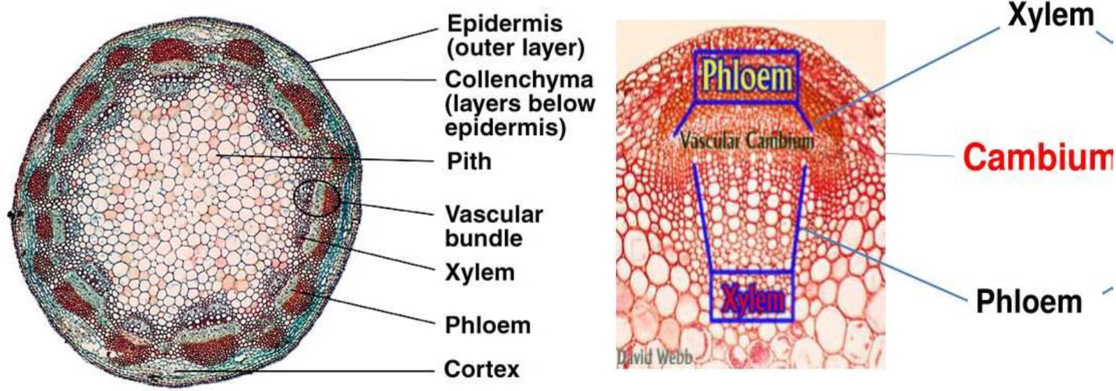 មានផ្ទុកជាលិកានាំដែលមានស៊ីឡែម និងផ្លូអែម។ ចំពោះរុក្ខជាតិម៉ូណូកូទីលេដូនមានទ្រនុងស្លឹកស្រប ចំពោះរុក្ខជាតិនីកូទីលេដូនមានទ្រនុងស្លឹកបែកខ្នែង។ ជាស្រទាប់ជាលិកាម្យ៉ាងដែលស្ថិតនៅចន្លោះអេពីឌែមលើ និងអេពីឌែមក្រោម។