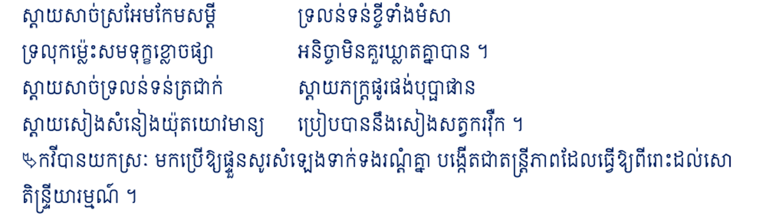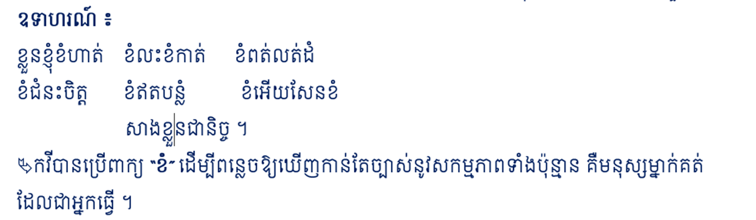 ព្រមទាំងបង្កើតសញ្ចេតនា និងរូបារម្មណ៍នៅក្នុងអត្ថបទកាព្យរបស់ខ្លួន ។