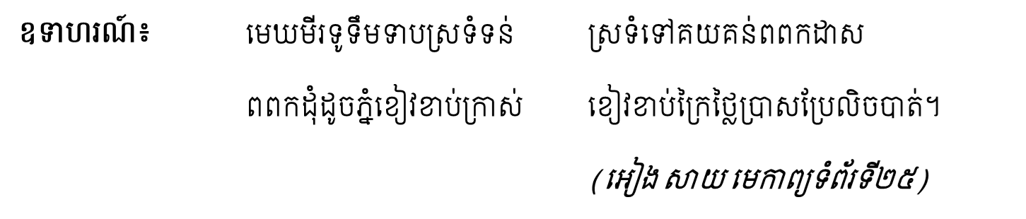 មួយជាកាព្យមាត្រមូលដ្ឋាន ហើយបន្ថែមកាព្យថ្មីមួយទៀតលើបទមូលដ្ឋានទាំងអស់នោះ។