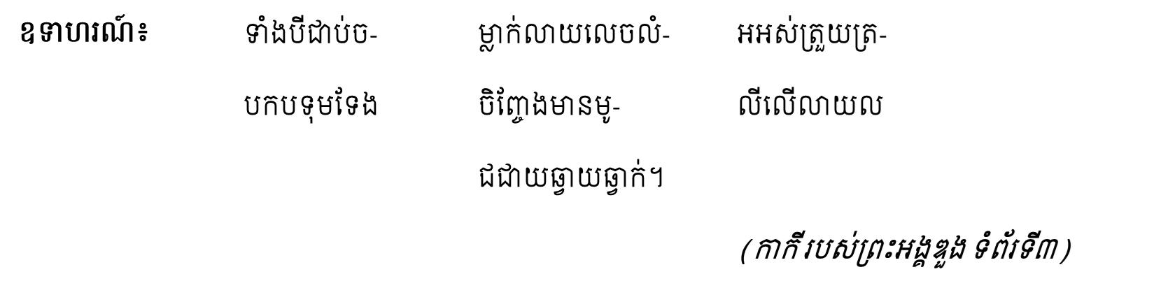គឺពាក្យកាព្យដែលកវីយកពាក្យបីព្យាង្គនៅខាងចុងឃ្លាដើម
