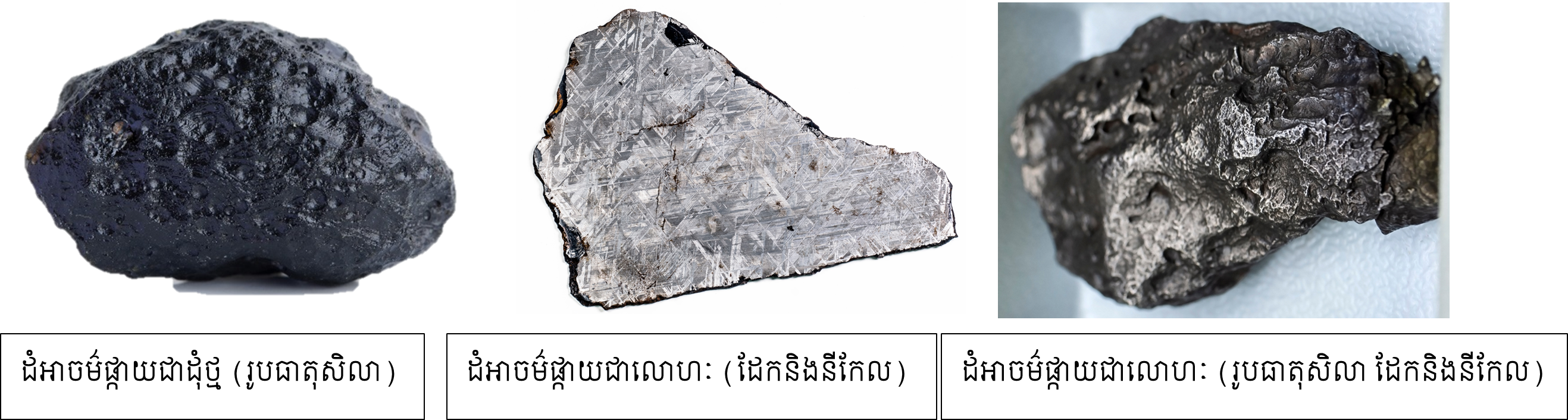 + អាចម៍ផ្កាយចែកជា ៣ ប្រភេទធំៗ គឺ៖