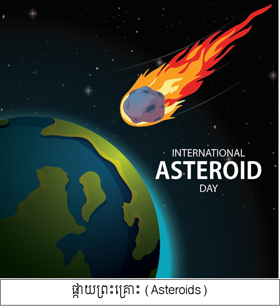 + ផ្កាយព្រះគ្រោះ (Asteroids) គឺជាអង្គសិលាតូចៗ