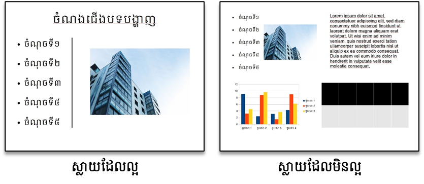 ◊ របៀបប្រើអត្ថបទ និងរូបភាពនៅក្នុងស្លាយសម្រាប់ការទំនាក់ទំនងដ៏មានប្រសិទ្ធភាព