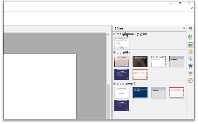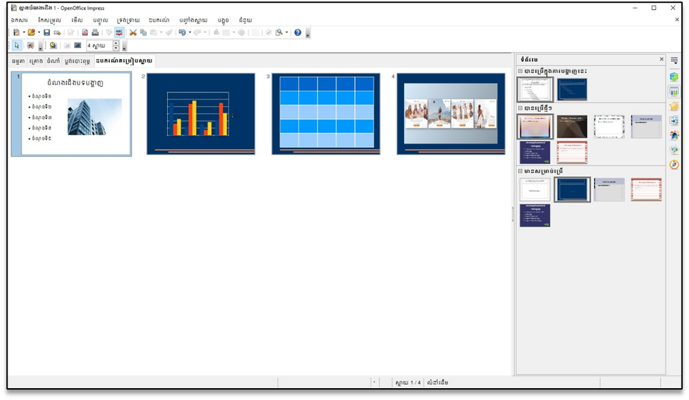 ◊ របៀបរៀបចំស្លាយ និងផ្ដល់បទបង្ហាញ ដែលរួមបញ្ចូលរូបភាព ផ្ទៃខាងក្រោយនិងចលនា។