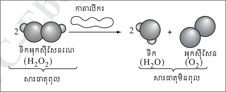 ឬ កំហាប់ប្រតិករបានទេ តែប្រតិកម្មគីមីទាំងនោះប្រើប្រាស់កាតាលីករសរីរាង្គ ដែលផលិតពីប្រូតេអ៊ីន ហៅថា អង់ស៊ីម។ ឧទាហរណ៍៖ អាហារដែលយើងបរិភោគ មិនអាចរលាយក្នុងទឹក ឬសាយបានទេ។ អាហារទាំងនេះជាម៉ូលេគុលធំៗ ជាហេតុមិនអាចឆ្លងកាត់ផ្ទៃភ្នាសកោសិកាបានគឺ វាត្រូវតែផ្លាស់ប្ដូរទៅជា