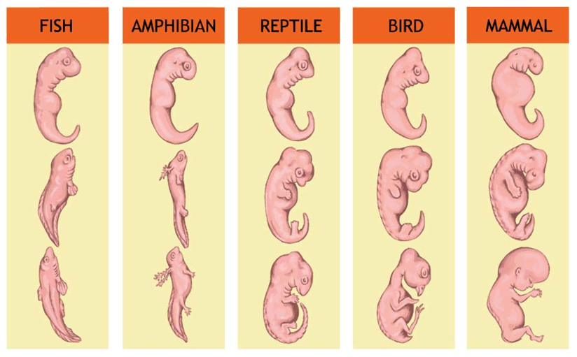 ភស្តុតាងដែលបញ្ជាក់ថាភាវៈរស់វិវត្តមានផូស៊ីលការលូតលាស់របស់អំប្រ៊ីយ៉ុងនៃសត្វប្រភេទផ្សេងៗ និងទម្រង់ដូចគ្នានៃសារពាង្គកាយ។